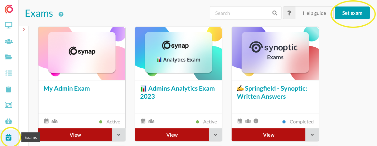 When you're ready to create an exam head over to the exams page and click the **Set exam** button