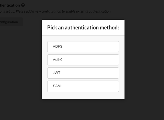 When adding a new configuration you'll be given a choice of authentication methods. An authentication method is the specific way or protocol that SSO will use to authenticate users. The authentication method is essentially the procedure that verifies a user's identity before granting them access to the systems or applications. Synap currently supports 4 methods out of the box