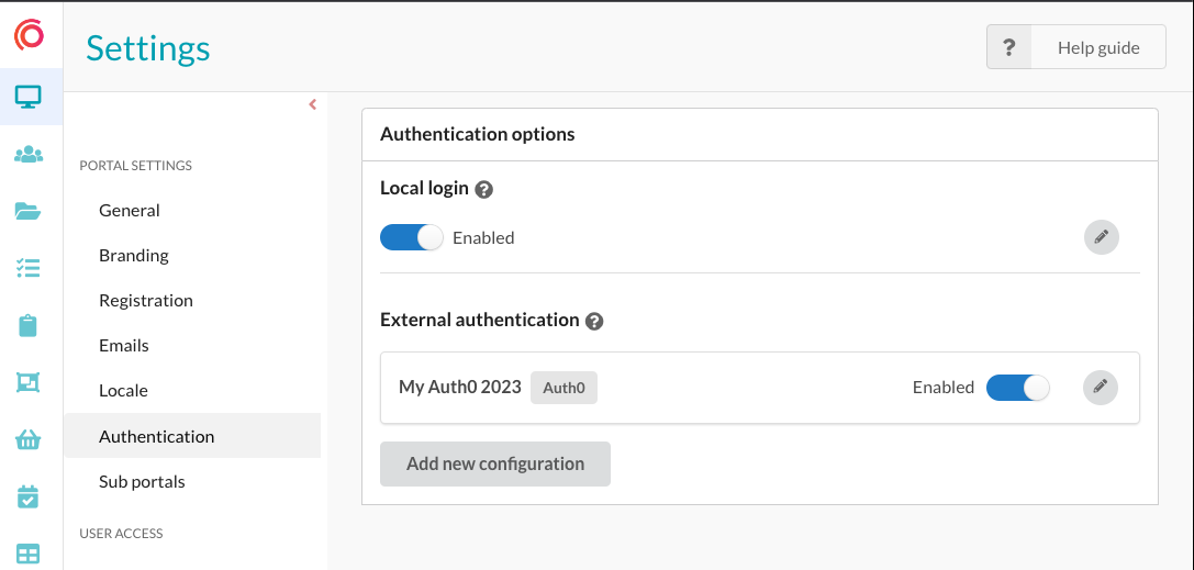 From here you'll notice an option to enable or disable local login, if disabled this means users will not be able to login outside of SSO. To manage additional registration options for new users head to the [Registration](https://academy.synap.ac/doc/portal-settings/portal-settings/registration-settings) settings page.
