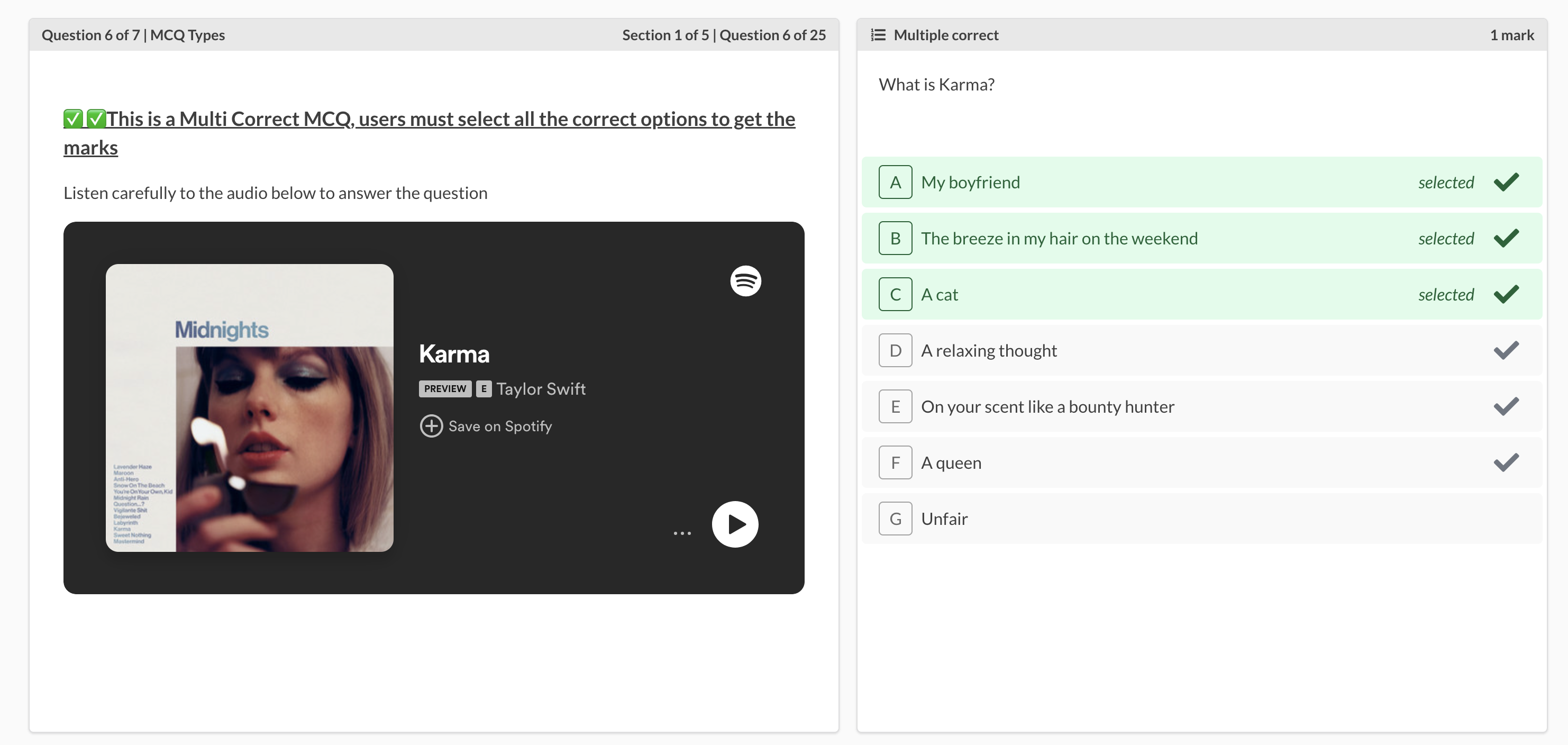 <figure><img src="https://3316915154-files.gitbook.io/~/files/v0/b/gitbook-x-prod.appspot.com/o/spaces%2F-MkgvUeCmTPeNouRxGPC%2Fuploads%2F69kxN0OnSVn1yTy872rQ%2FMultiple%20correct%20question.png?alt=media&#x26;token=588096dc-1206-4585-aa73-0ee4fb00733a" alt=""><figcaption><p>An example of a multiple correct question </p></figcaption></figure>