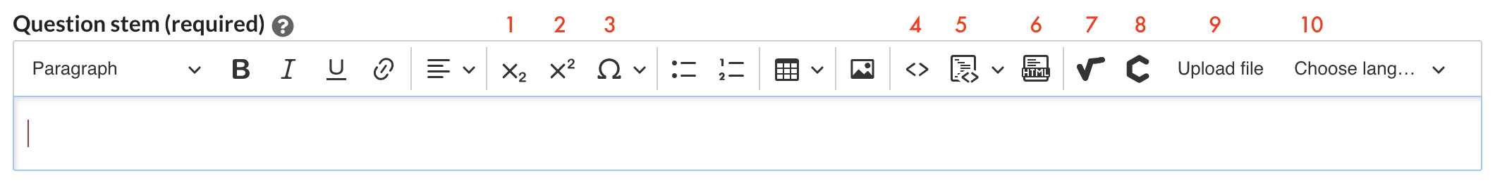<figure><img src="https://3316915154-files.gitbook.io/~/files/v0/b/gitbook-x-prod.appspot.com/o/spaces%2F-MkgvUeCmTPeNouRxGPC%2Fuploads%2FL1CotWAGfJCxb6F4g4V5%2FScreenshot%202023-06-15%20at%2015.14.46.png?alt=media&#x26;token=a81f0e09-58ab-43d2-ad61-1f7b96fd79ec" alt=""><figcaption><p>Question text editor</p></figcaption></figure>