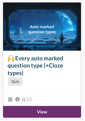 | **Cloze free text**     | Students must type a response to fill a gap(s) in a sentence or formula.  This will be automarked against a list of correct answers specified in the quiz builder                                                                                                                                                                                                                                                                                                                       |