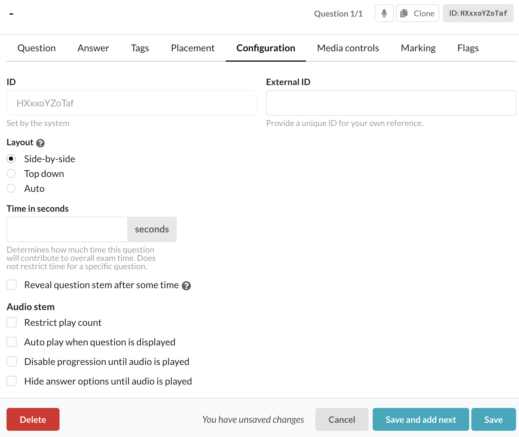 | Hide answer options until audio is played | Answer options will be hidden until the audio / video stem has finished playing.                   |