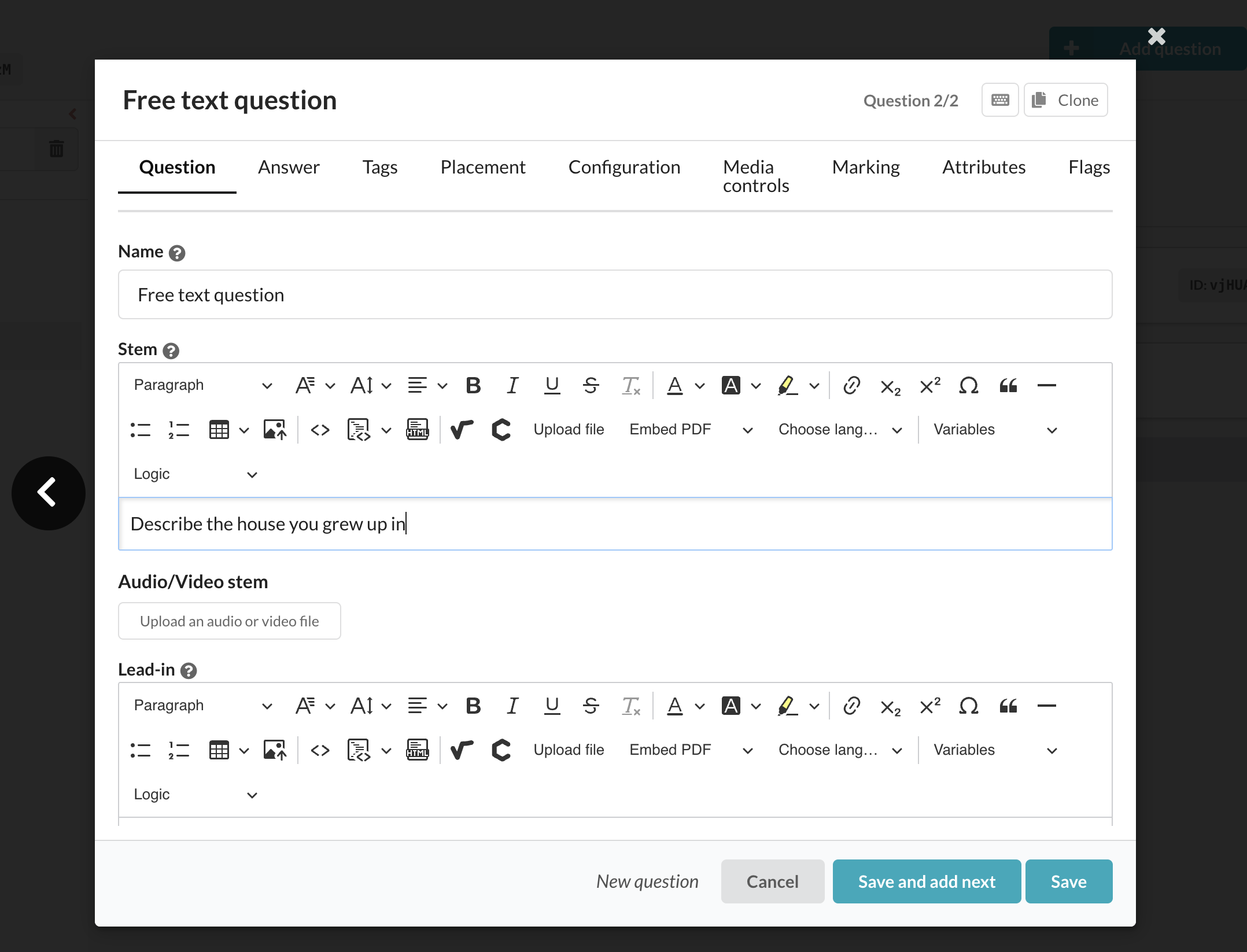After selecting the Free Text question type, you will need to enter the question stem, i.e., what question you want users to answer.