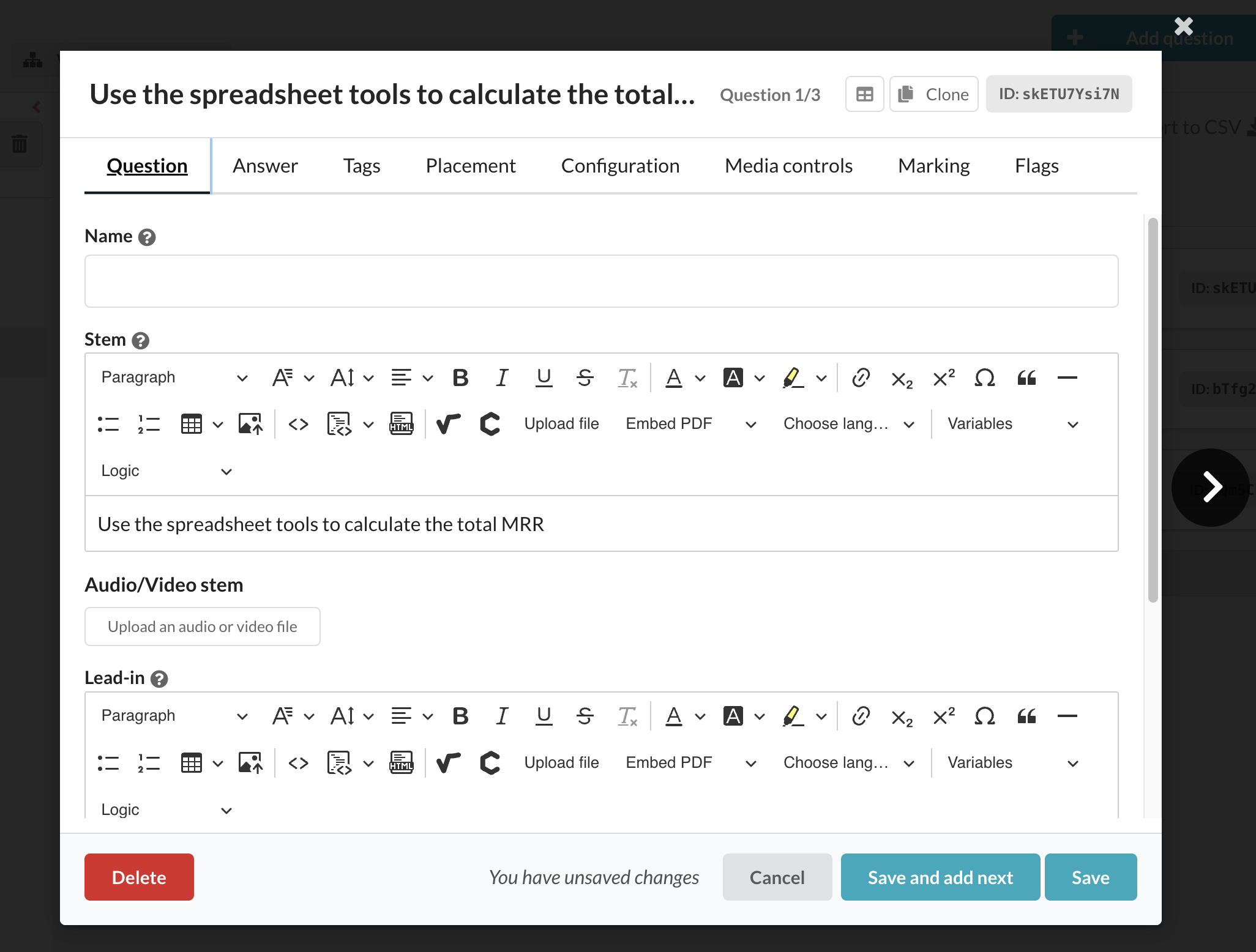 Additional spreadsheet tools can be accessed on the question building and answering side by hovering over the three dots icon to the right of the toolbar