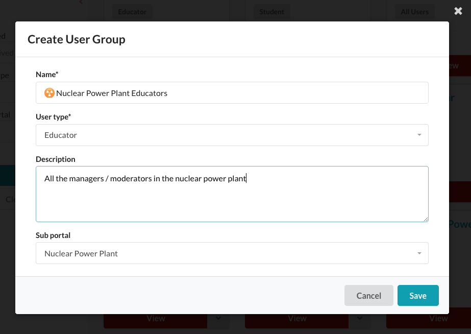 Follow the same steps above to create an educator group, just make sure you set the user type to `Educator` .