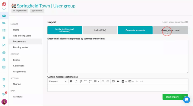 As users can only be invited to one group at a time, generating accounts allows you to add them to additional groups immediately.