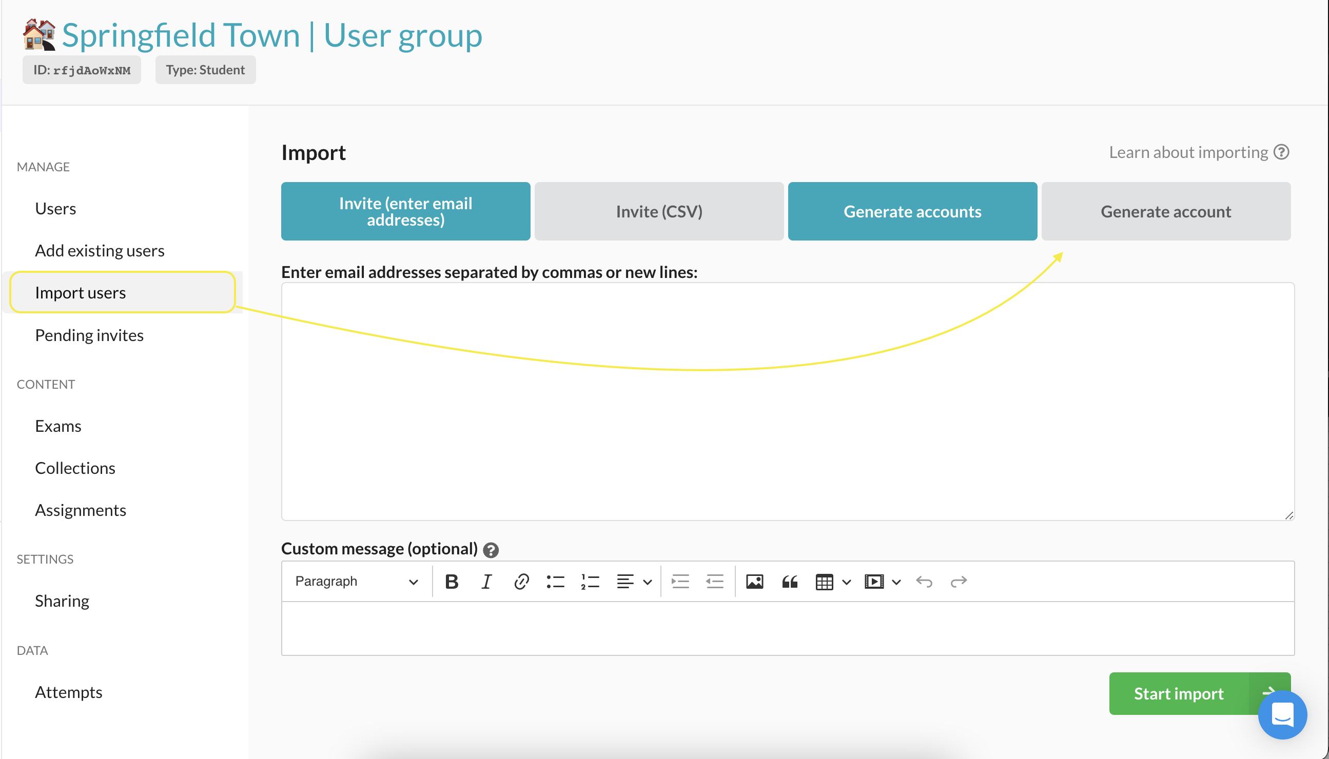 ๐ง Remember on Synap it is membership in a user group that decides what content someone has access to. Generating users lets you bypass the invites system and will automatically set up a users account, helpful if you're running exams and you want to make sure everyone's got the exam email without them having to finish their account set up!